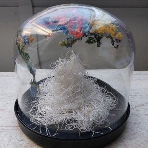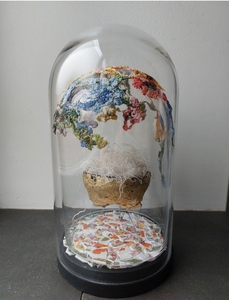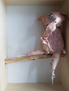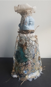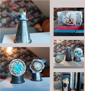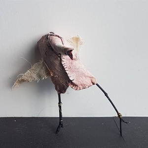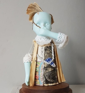 In mijn MixedMedia 2d werk combineer ik graag geschilderde onderdelen met collage. In mijn ruimtelijke werk maak ik gebruik van verschillende materialen. Oud textiel of papier, gevonden en gekochte voorwerpen. Door deze samen te voegen onstaan er verhalende werken in de vorm van figurines en installaties.